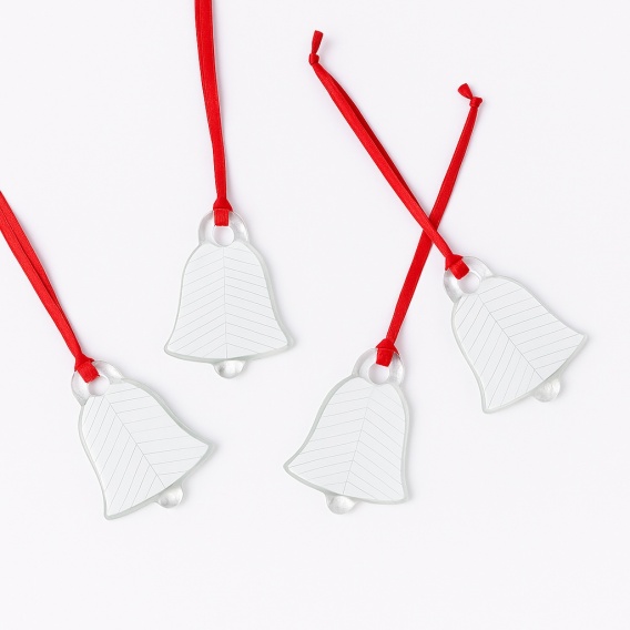 Zestaw czterech autorskich świątecznych zawieszek na choinkę wykonanych ze szkła metodą fusingu. Elementy wykonane ze szkła bezbarwnego z ręcznie malowanym i wypalanym wzorem na powierzchni. Spód szkła posiada delikatną fakturę ciekawie odbijającą światło.
